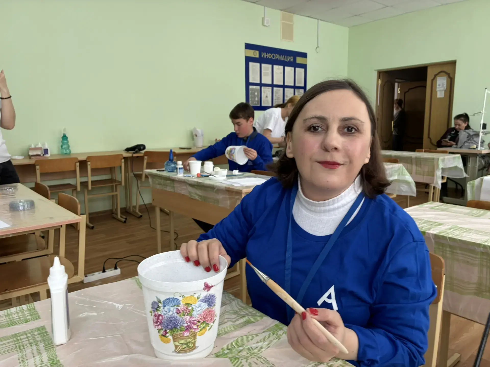 Мария Гомыгина (наша звёздочка из студии творчества) продемонстрировала настоящее мастерство! Её конкурсное задание - задекорировать цветочный горшок в сложной технике декупаж - было выполнено виртуозно и с безупречным вкусом.